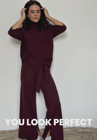 Sweater Bailey is a timeless knitted turtleneck sweater with modern details. This sustainable knit sweater (chunky knit) is created in a purl knit and has shortened sleeves. The asymmetrical hem trim is a nice detail that makes it unique. It is an ideal companion for ladies, but can also be worn perfectly at work or dinner.